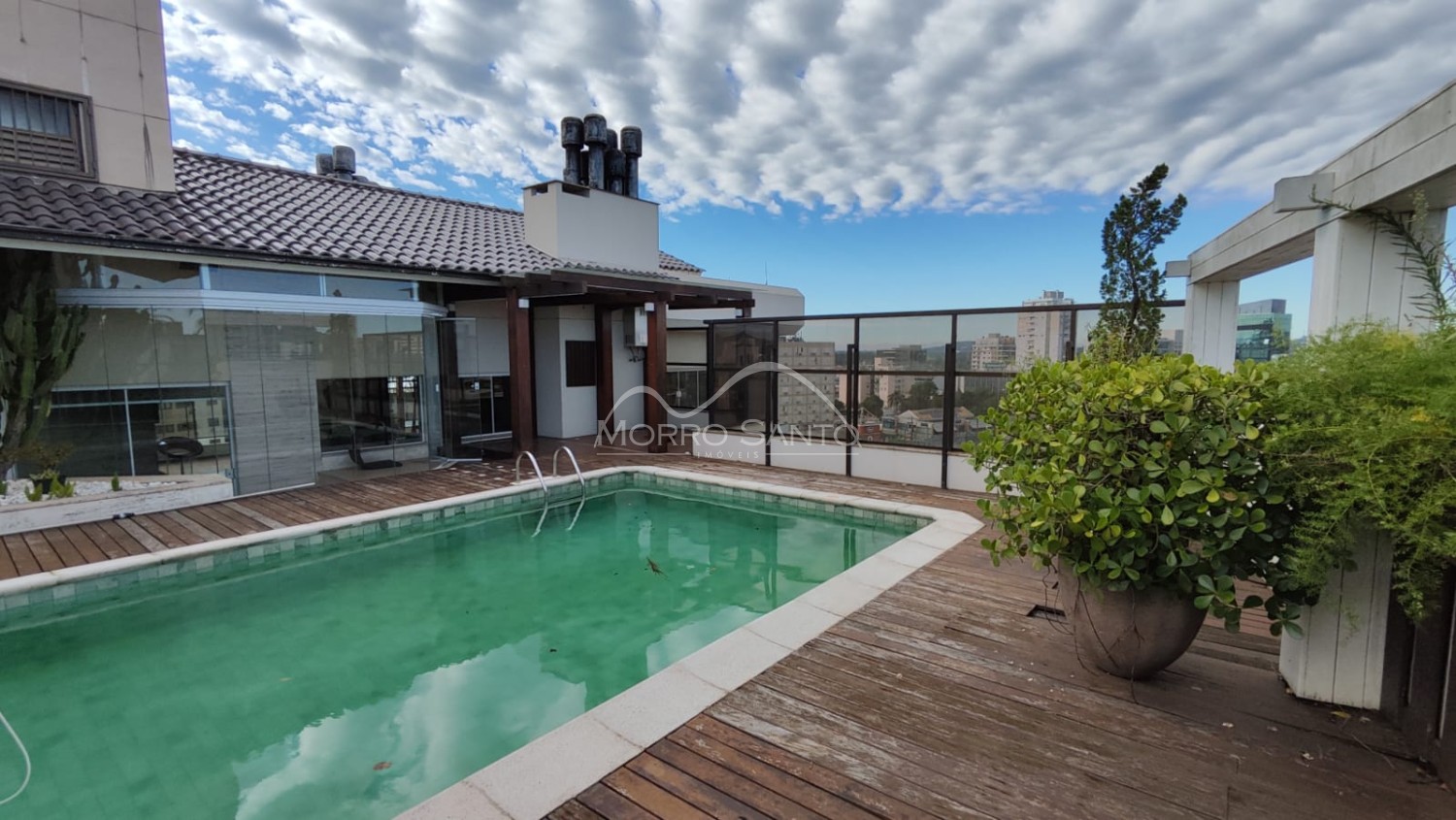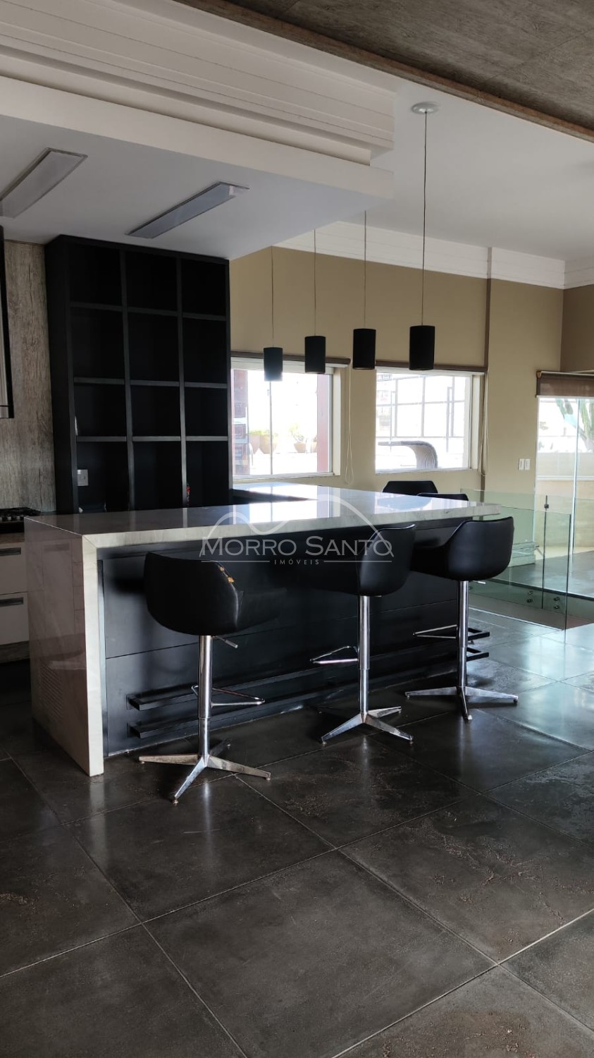 Descrição › Linda cobertura duplex no residencial Damasco, localizada na área central da cidade com 510 m² 4 suítes, sala estar, sala jantar, cozinha, escritório, sala academia, lavanderia e piscina 4 X 7 e visão 360, 4 box estacionamento para 6 carros.
